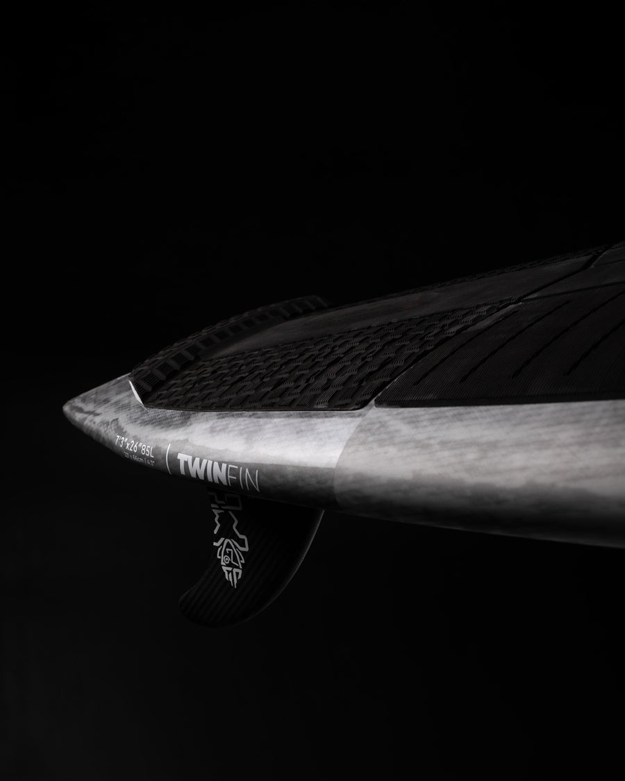 The Twin is best for smaller, weaker waves, letting intermediate surfers perform more radically with less technique. It stays lively throughout the wave, generating easy speed and quick recoveries. Despite its small-wave focus, it can handle well overhead surf, pumping off the bottom and racing sections. Compared to the Spice and Pro, the Twin is looser and unlocks speed faster. The Pro remains the high-performance choice in bigger, critical conditions, delivering top hold and control. The Spice offers versatility with quad or thruster setups, plus bevel rails for smooth rail-to-rail transitions and added hold. The Twin complements but doesn’t replace either, appealing to those seeking relaxed lines, high-speed arcs, and tail slide turns.
